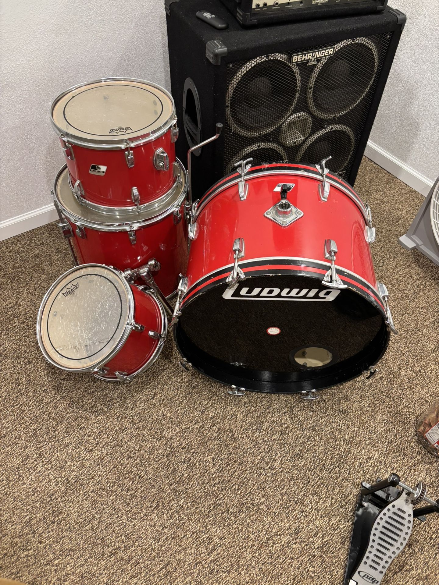 For sale. Good condition. Selling because i play my guitars more. 22 in bass drum. 16 13 and 12 inch tom. Hardware is a mix of pearl and pacific. No snare, kick pedal or cymbals included. Located in new berlin
