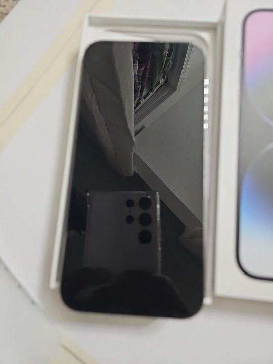 Pre-owned iphone 14pro max 128 gb unlocked Purple with box and charger accessories