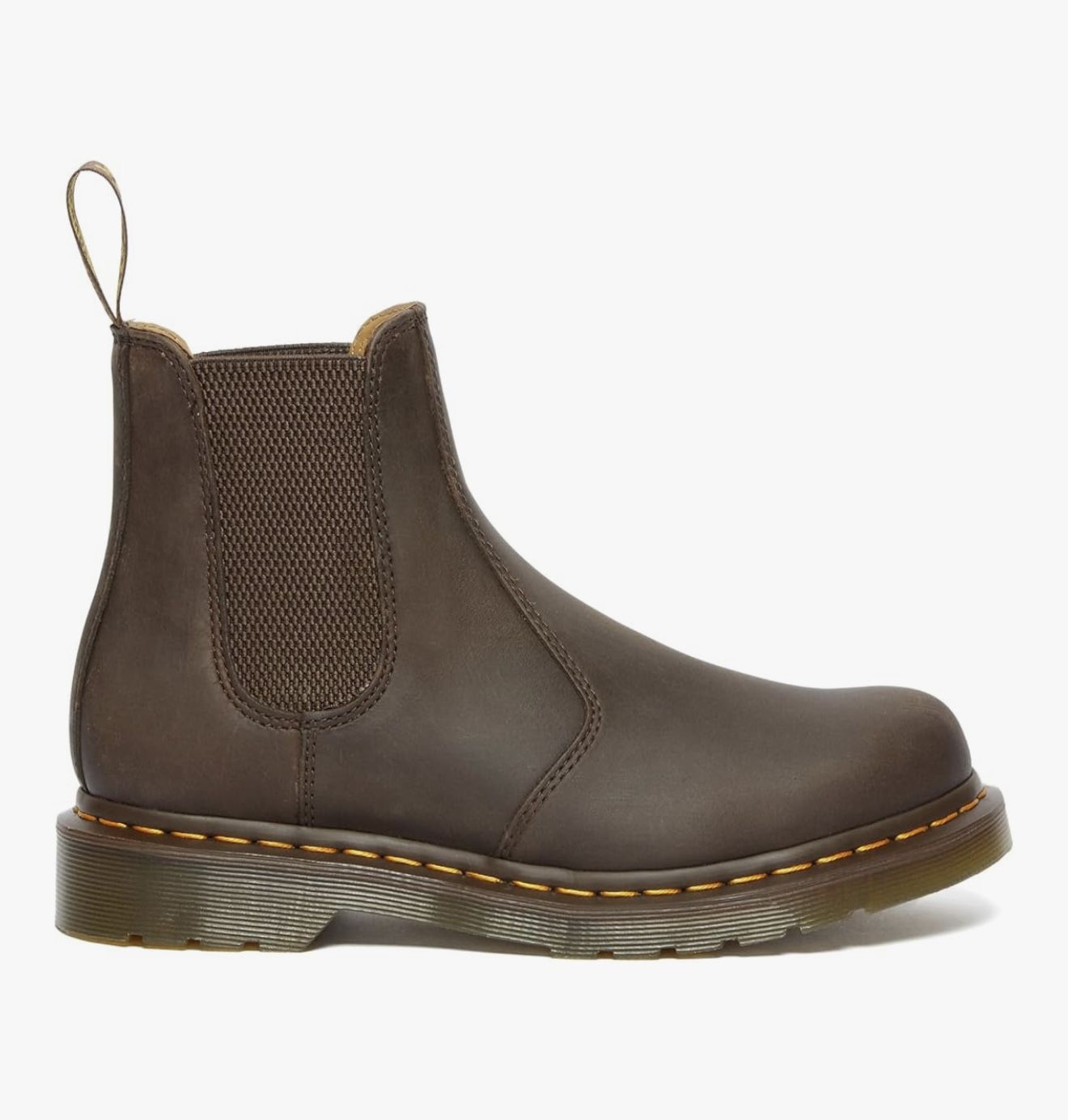 100% leather chelsea style boots made with tough, heavyweight Crazy Horse type of leather. Made with all the classic Docs DNA, including grooved sides, heel-loop and yellow welt stitching Built on the iconic Dr. Martens air-cushioned sole, which is oil and fat resistant, with good abrasion and slip resistance. This is a unisex model. The size is 9 for men and 10 for women.