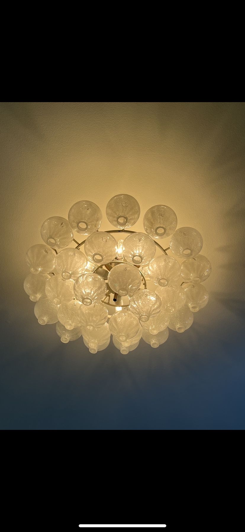 Vintage Tulipan Chandelier Normally sells for $5K From the 1960s, hand blown glass Designed by J.T. Kalmar Sockets: The chandelier takes 9 small screw base bulbs (E14 candelabra with max. 40W per bulb). pick up only working condition OBO Not pictured: two glass bulbs were broken by the movers but other bulbs can be purchased at the link below: https://offerup.com/redirect/?o=aHR0cHM6Ly93d3cuY2hhaXJpc2guY29tL3Byb2R1Y3QvNTA0NzQyNi90dWxpcGFuLWNlaWxpbmctbGFtcC1ieS1qLXQta2FsbWFyLWZvci1rYWxtYXI=
