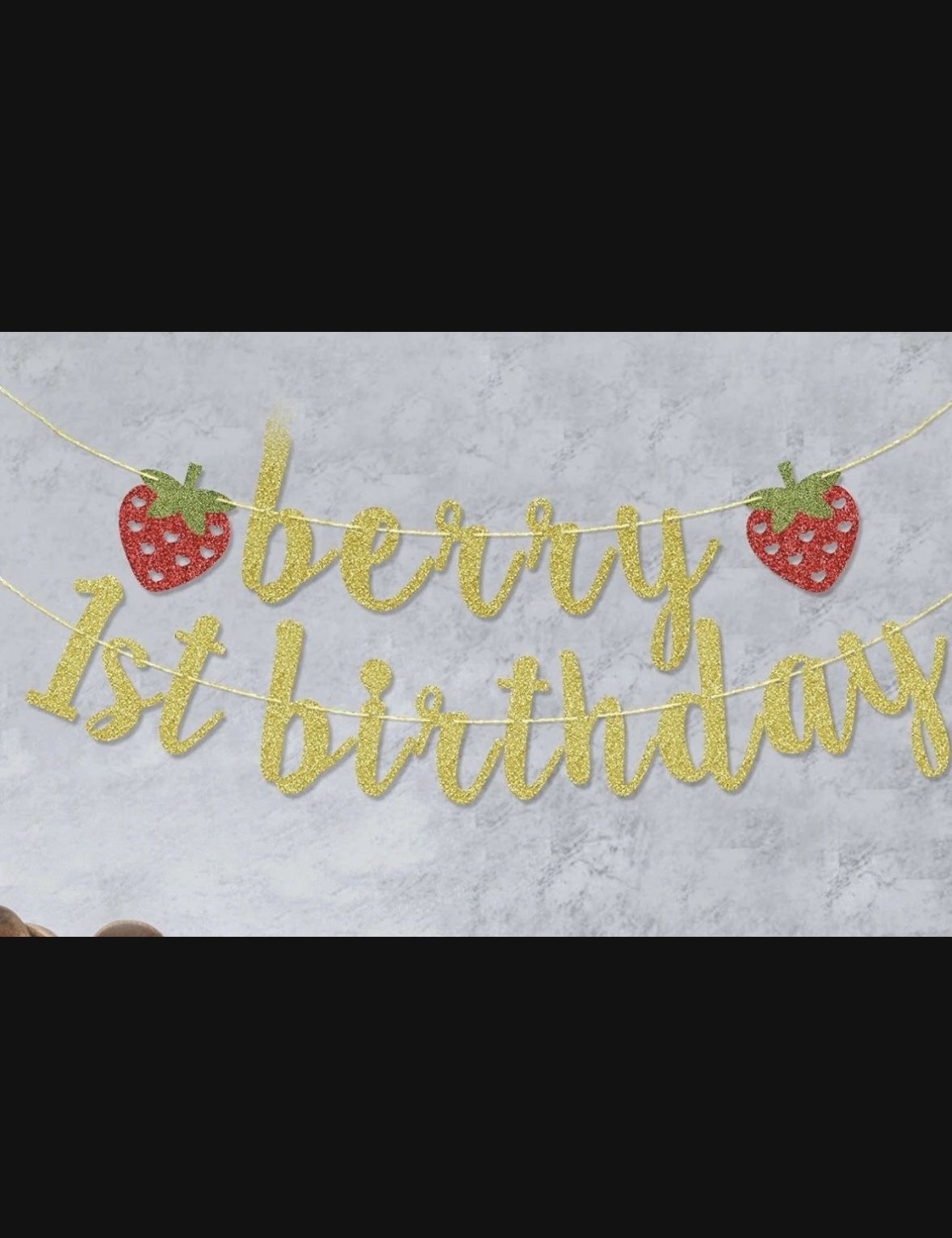 One Berry first birthday banner One strawberry large happy birthday banner Strawberry banner Table confetti Several hanging strawberry’s and other related decor All used but in excellent condition $20 OBO