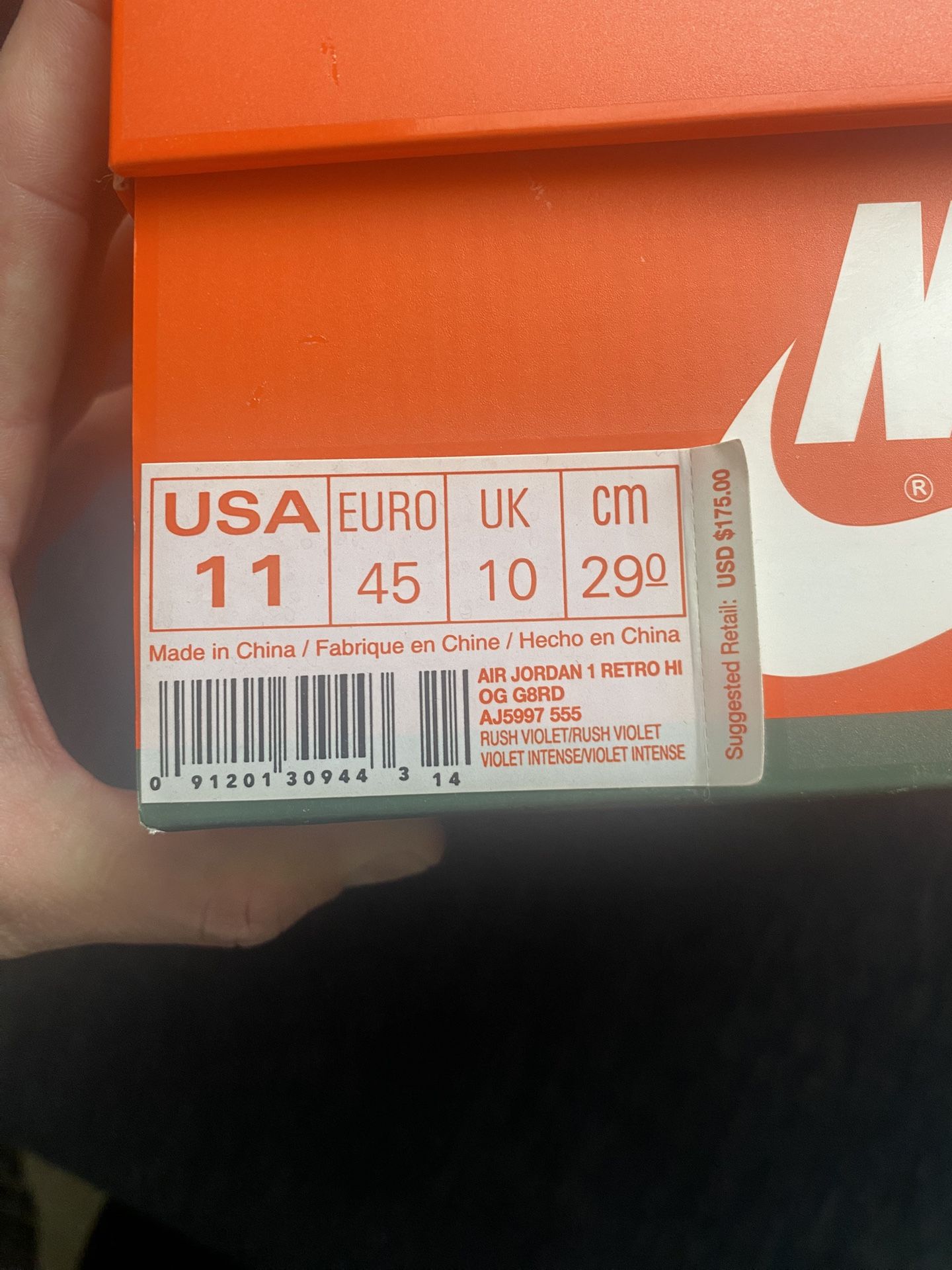 AIR JORDAN 1 RETRO HI OG G8RD AJ5997 555 RUSH VIOLET/RUSH VIOLET VIOLET INTENSENIOLET INTENSE Size 11