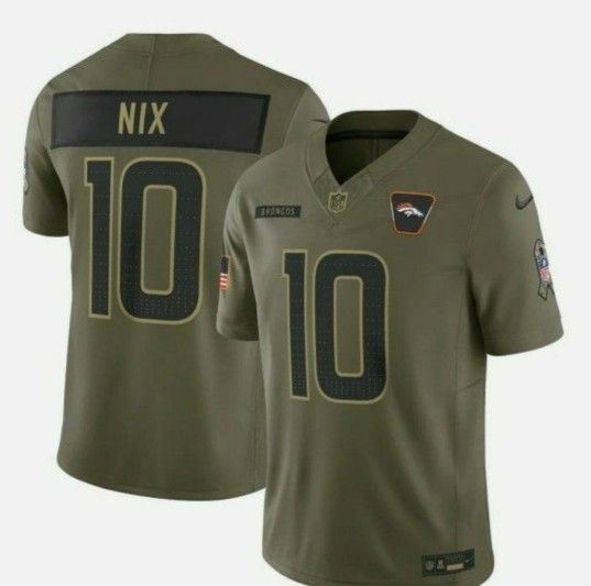NWT Men's Broncos #10 Bo Nix Olive 2025 Salute Service Limited Jersey Size: Adult XL Everything on jersey is stitched