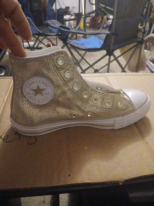 BRAND NEW, NEVER WORN, NEVER LACED UP! CONVERSE Chuck Taylor All Star Shoes. Hightop sneakers. LEATHER UPPER MATERIAL WITH FABRIC LINING & INSOLE. Pd. $75 will take $40. LOCAL ONLY