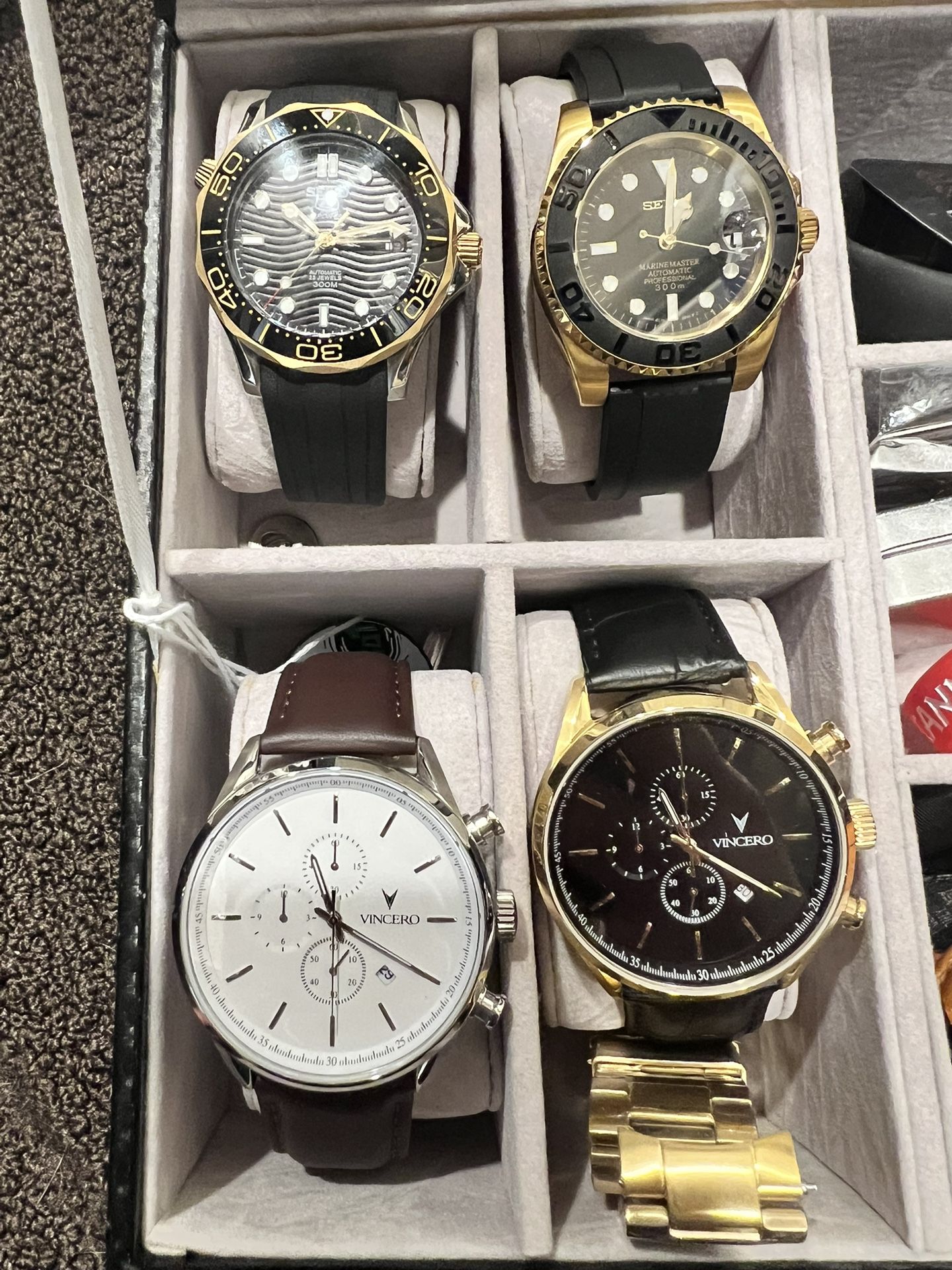 I am selling some of my watch collection (all the watches in pictures are for sale individually) Prices below Vincero watches - $100 each. Retail is $200 plus extra strap I am including Seiko mod watch (gmt sold) - $175 Let me know if you have questions. They have been great watches and use very little as I wear different watches throughout the week