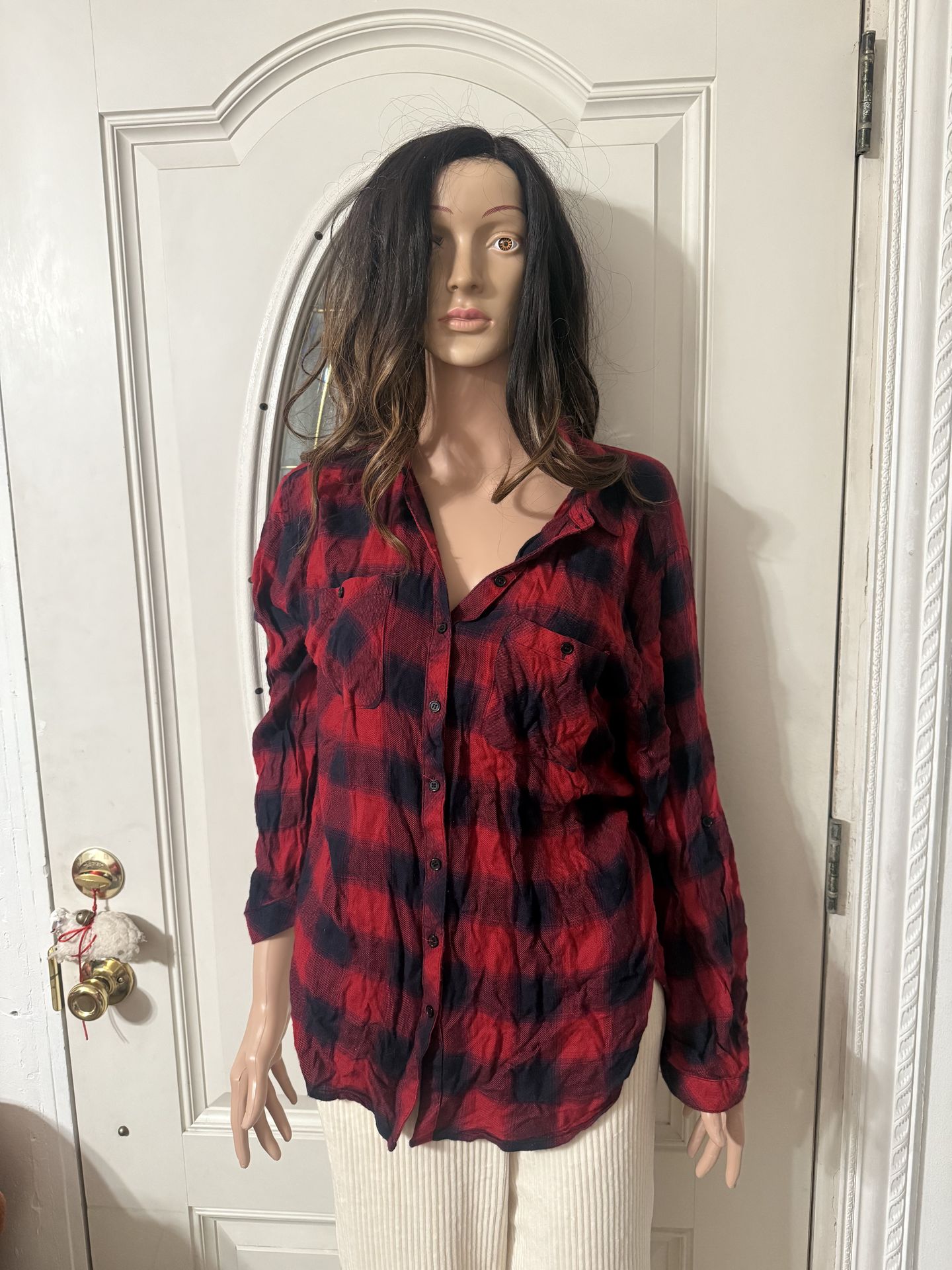 Womans plaid long sleeve button front shirt size XL in really good condition.