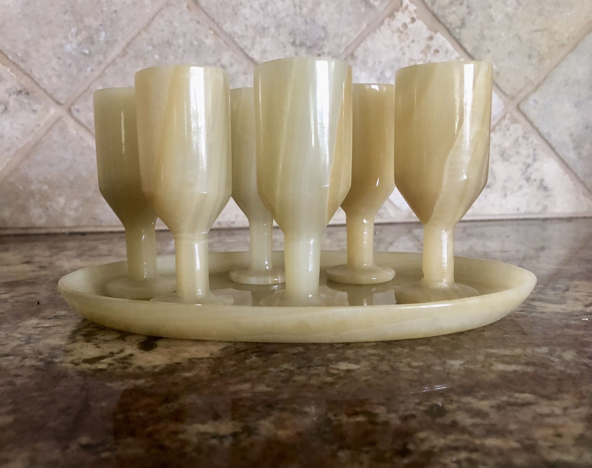 Vintage Onyx Cordial Set With Tray