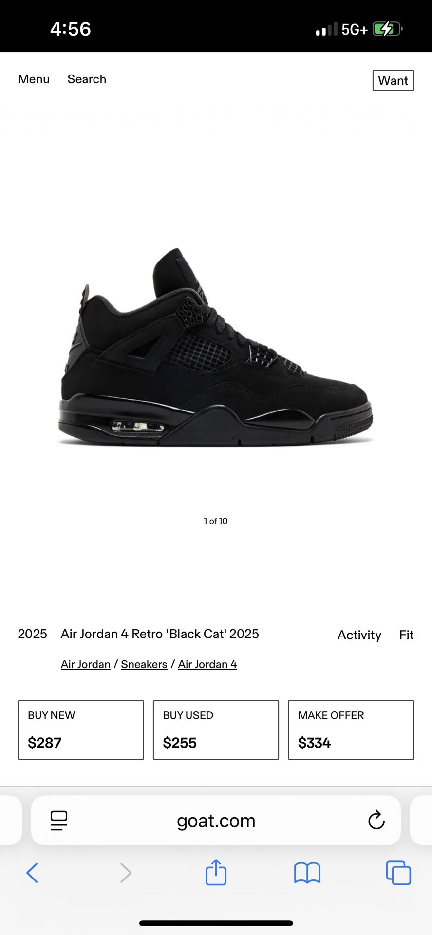 Black Cat 4s Size 9