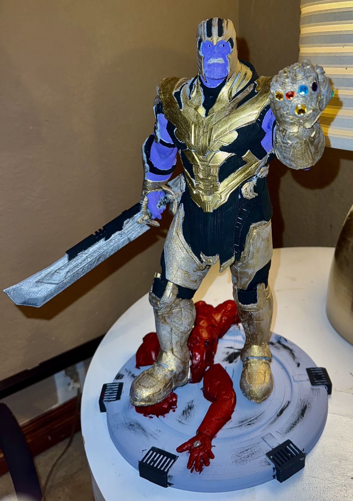 Thanos 3D Figurine (6 inches) Thank you for checking out my 3D prints! If you’re interested in a different size, color, or custom-painted version, please don’t hesitate to reach out. I’m happy to discuss any customization or answer any questions to make sure you get exactly what you’re looking for! Be sure to check out the other items I have listed on my page for more unique pieces. Thank you for your support! OBO