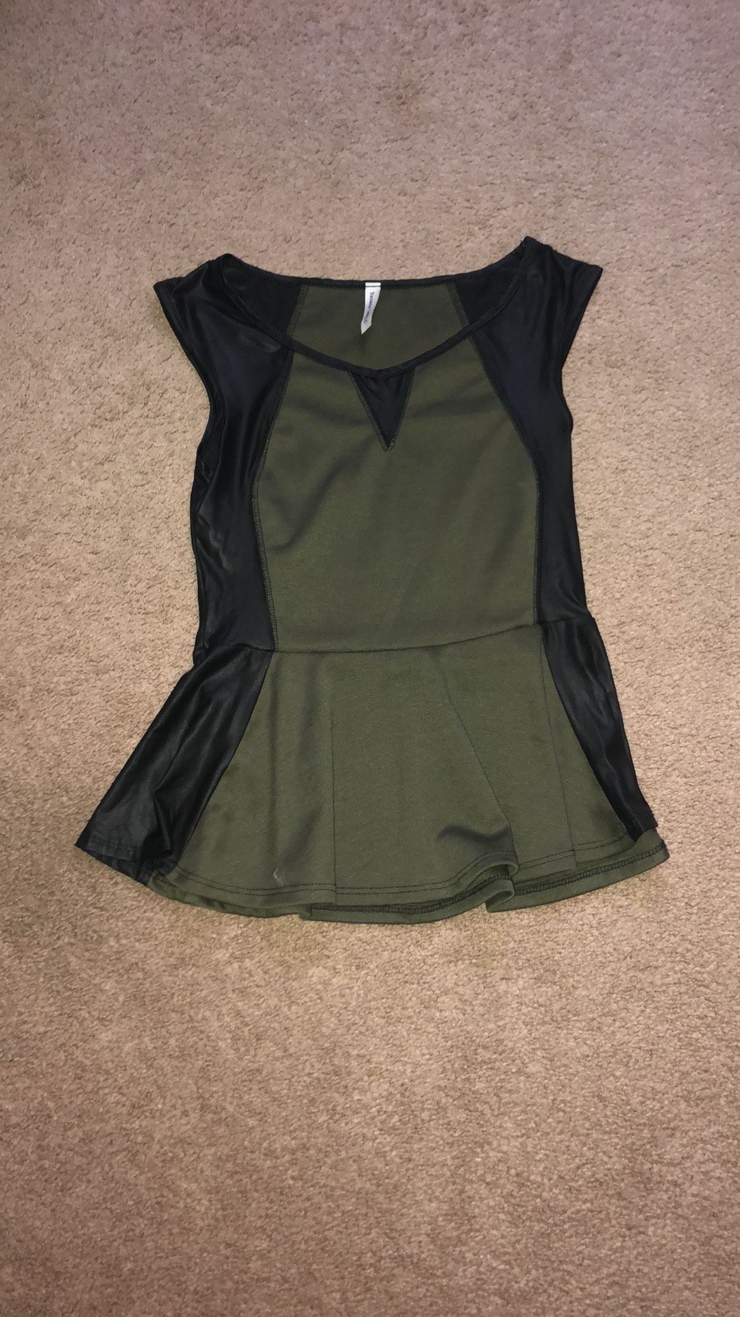 Women peplum top Olive and black peplum top Black leather sides Size: Small