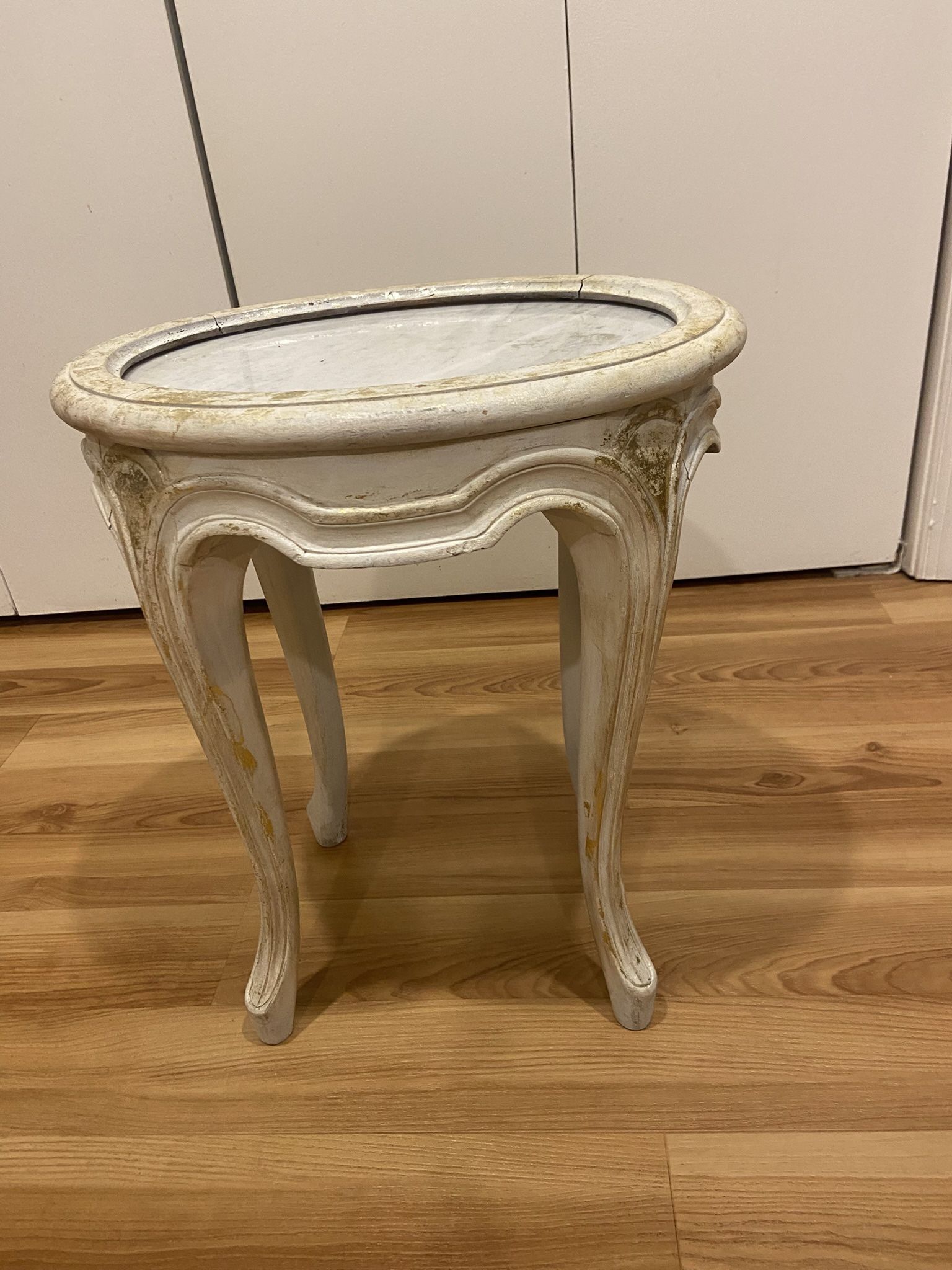 Antique Little Table: Wood And Marble