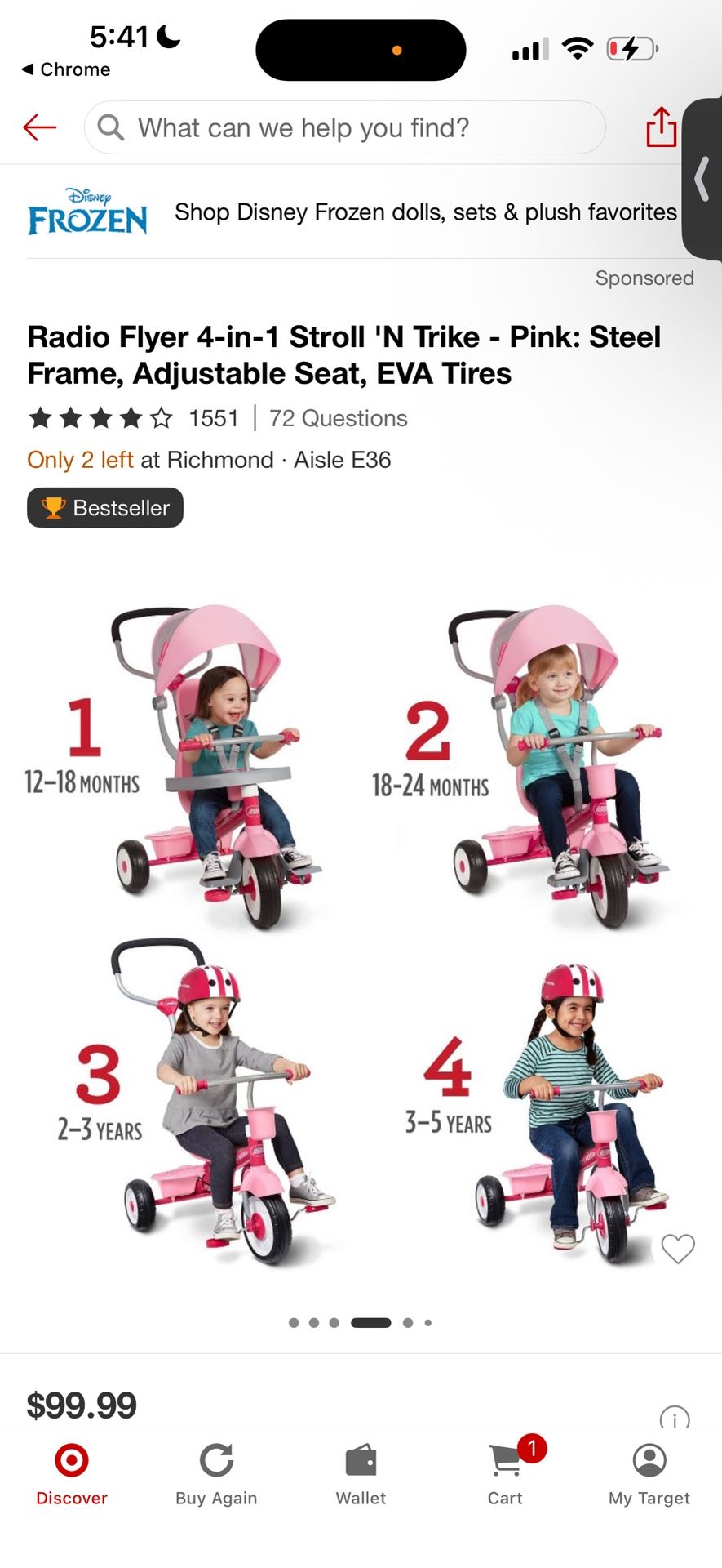 Radio Flyer 4-in-1 Stroll 'N Trike Infant and Toddler Tricycle Stroller, Pink