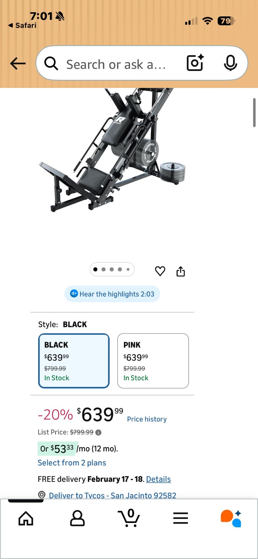 Only used for 1 month, maybe 10 times. Basically brand new. No weights included. Dimensions are 37” width x 84” length x 58” height. Heavy. Bring a truck.