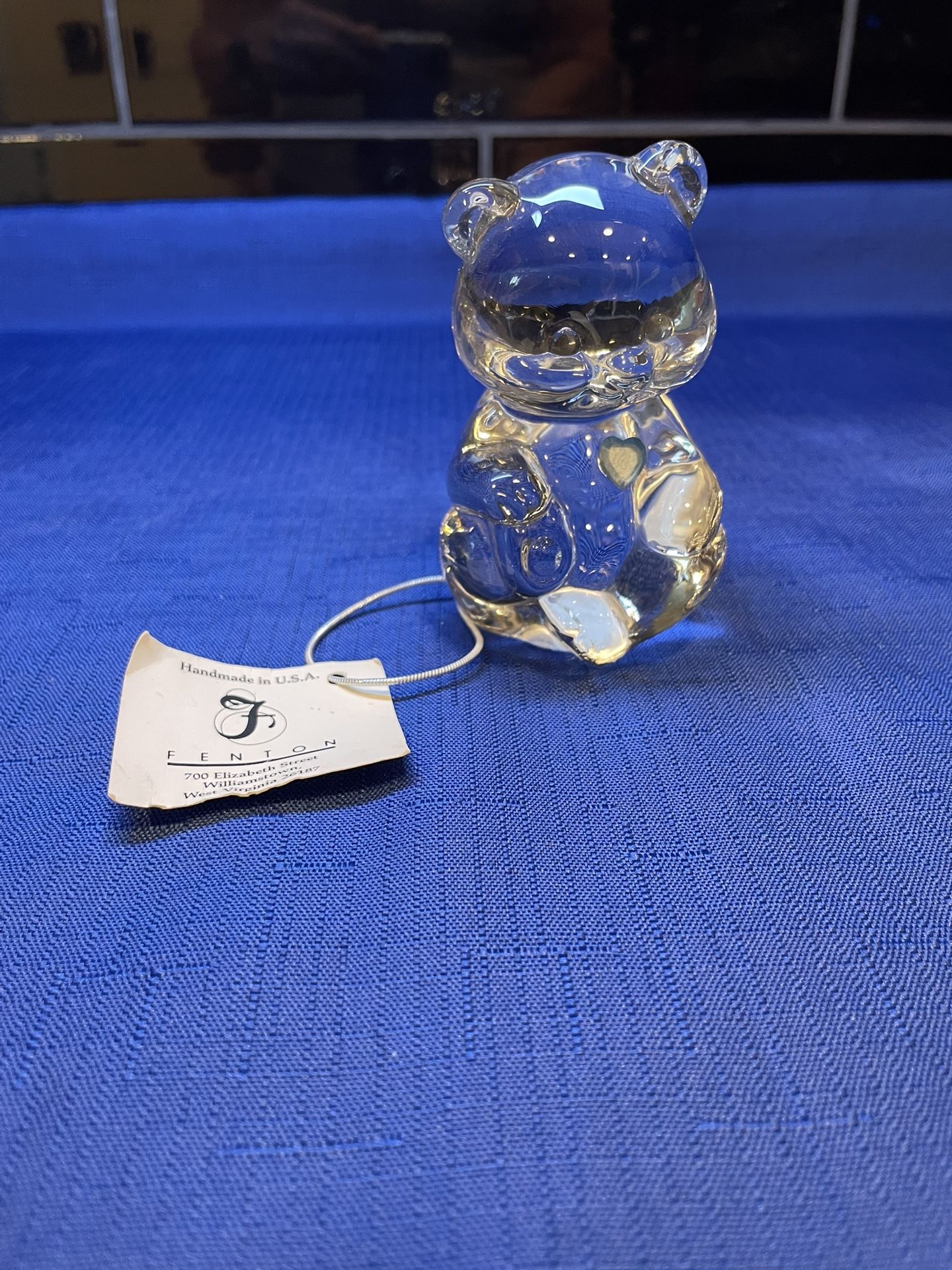 Beautiful vintage Fenton glass beat with blue heart crystal. This adorable glass figurine features Fentons hand crafted artistry. A perfect gift for the Fenton collector or animal lover! New with tag and sticker on bottom. Excellent condition 3 5/8” T X 2 1/4” W