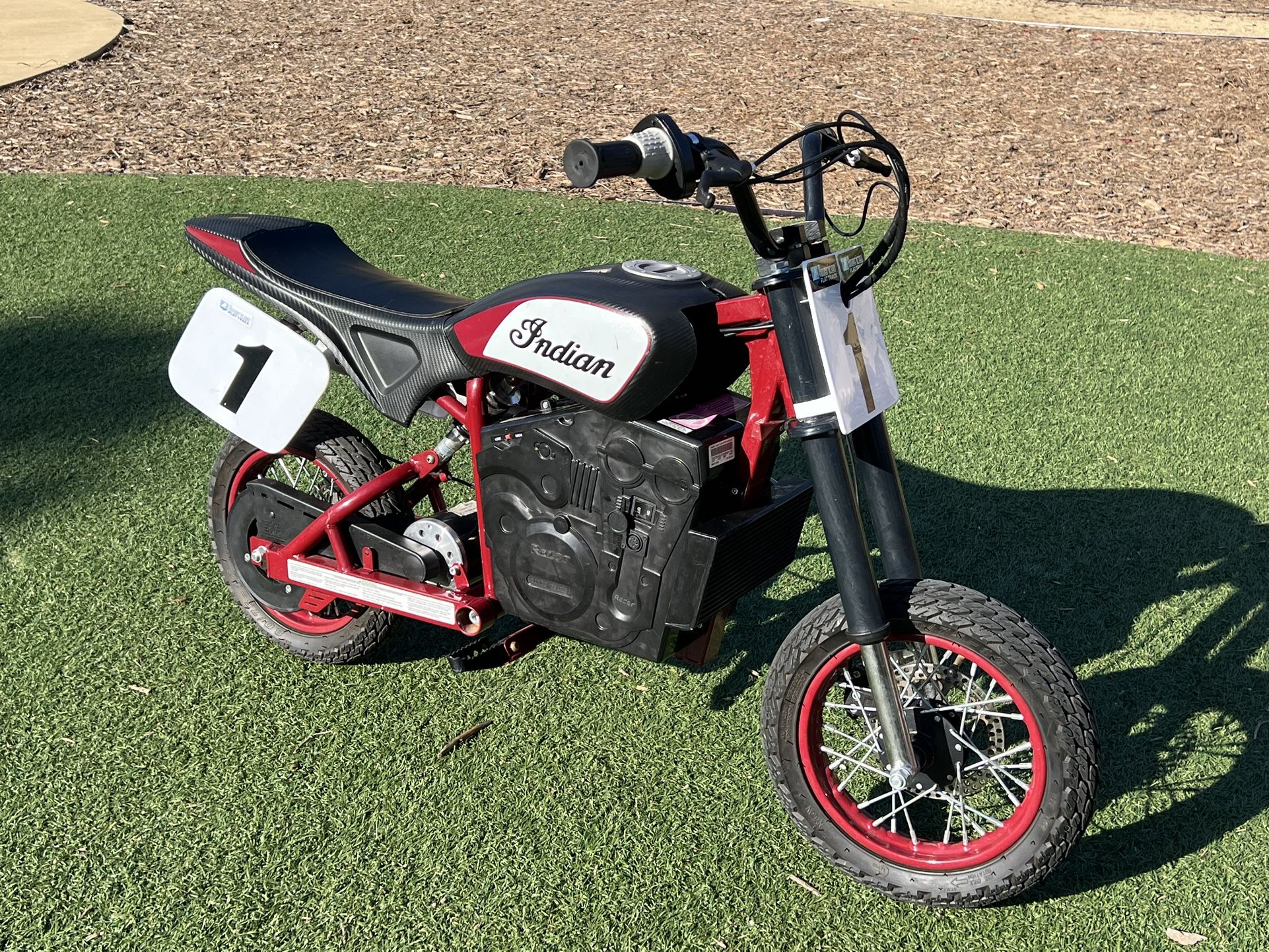 4 indian inspires young riders with its first electric mini ... The Indian eFTR Jr is a 36-volt electric youth mini-bike styled after the FTR750, designed for riders aged 8+ (Low: 10 mph) and 13+ (High: 15 mph). It features a steel frame, dual-disc brakes, 140-min battery life (low mode), and a 175 lbs weight capacity. Key Specifications Motor/Battery: 36-volt rechargeable system. Speed: Two modes: Low (10 mph) and High (15 mph). Battery Life: Approx. 140 minutes (low mode) to 65 minutes (high mode). Weight: 110 lbs. Dimensions: 51" L x 23.2" seat height. Weight Capacity: 175 lbs (79 kg). Construction: Steel frame, chain drive, telescopic front fork, and rear mono-shock. Brakes: Hand-operated dual-disc brakes. Age Recommendation: 8+ (Low mode), 13+ (High mode). Key Features Design: Modeled after the championship-winning Indian Motorcycle FTR750. Safety: Designed for off-road use only; requires safety gear. Adjustability: Features an adjustable handlebar. The eFTR Jr is intended to provide an approachable, electric entry point for young riders to learn, with a focus on safety and durability.