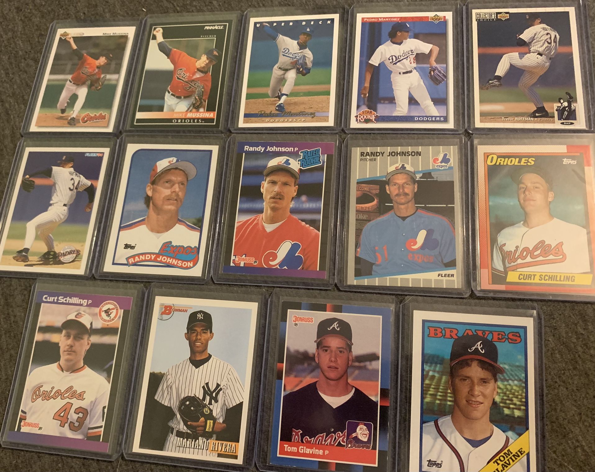Rookie Cards from some MLB greats / Hall of Famers . Ken Griffey Jr. Bo Jackson Mark McGwire Alex Rodriguez Miguel Cabrera Derek Jeter Mike Mussina Pedro Martinez Trevor Hoffman Randy Johnson Curt Schilling Mariano Rivera Tom Glavine If you’re interested, make me an offer! Also, check out my page for more cards :)