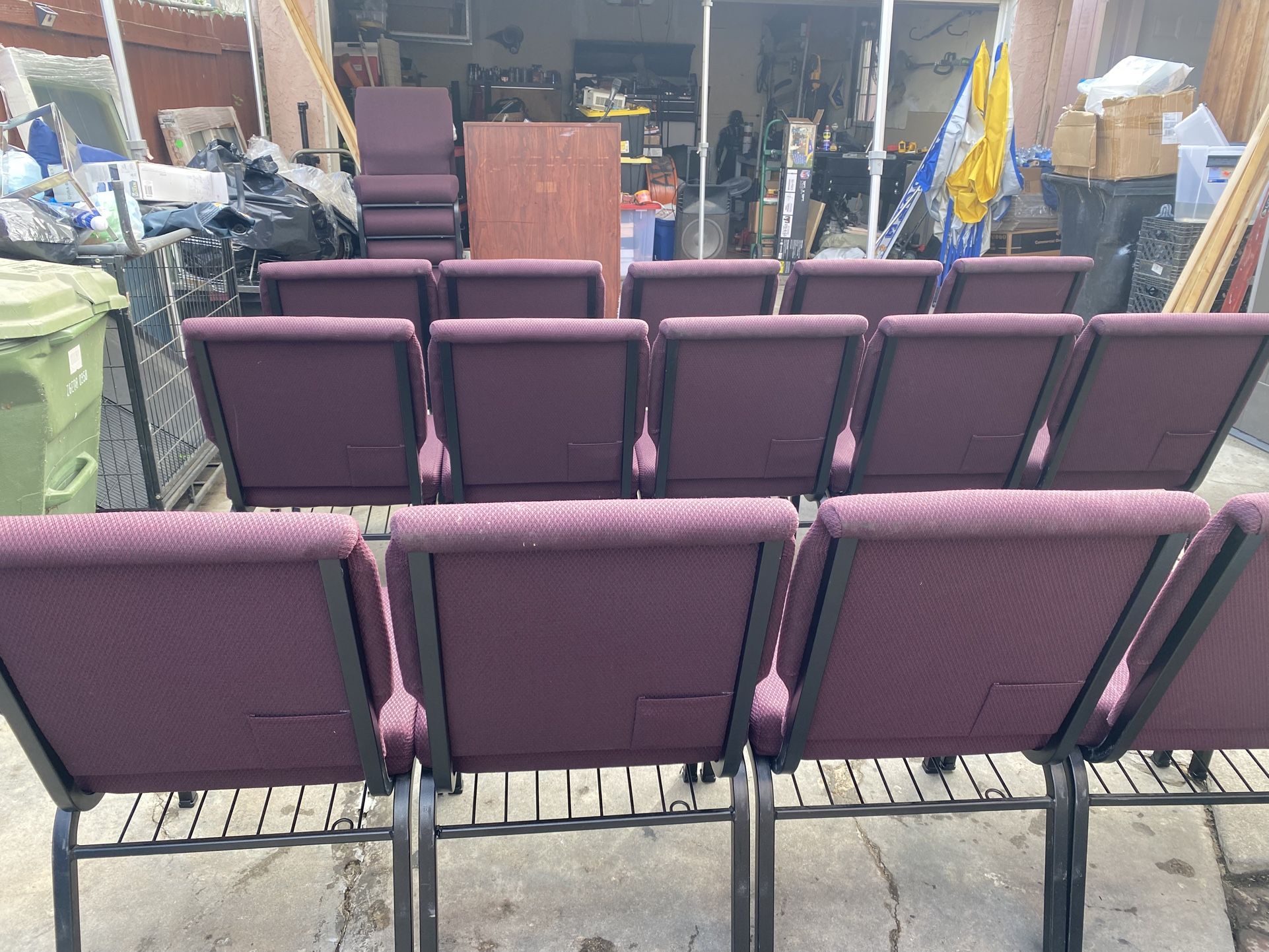 19 chairs connect to one another new $88 1 podium needs electrical work only light works Needs good cleaning SEE PICS $500 for all chairs and podium