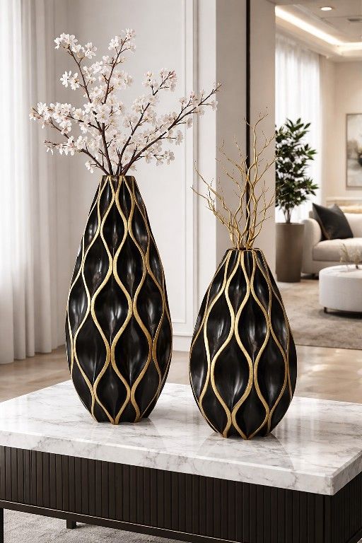 Black and Gold Geometric Modern Vases
