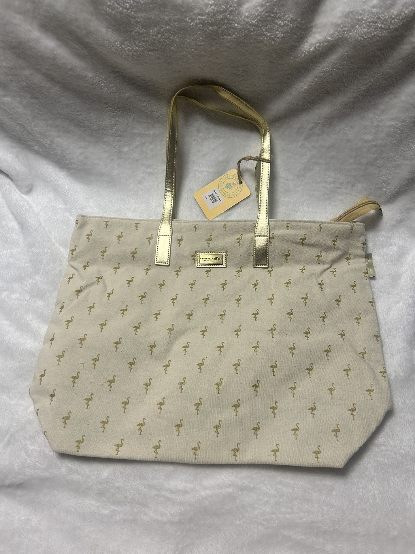 Large cream and gold flamingo tote shoulder bag handbag purse