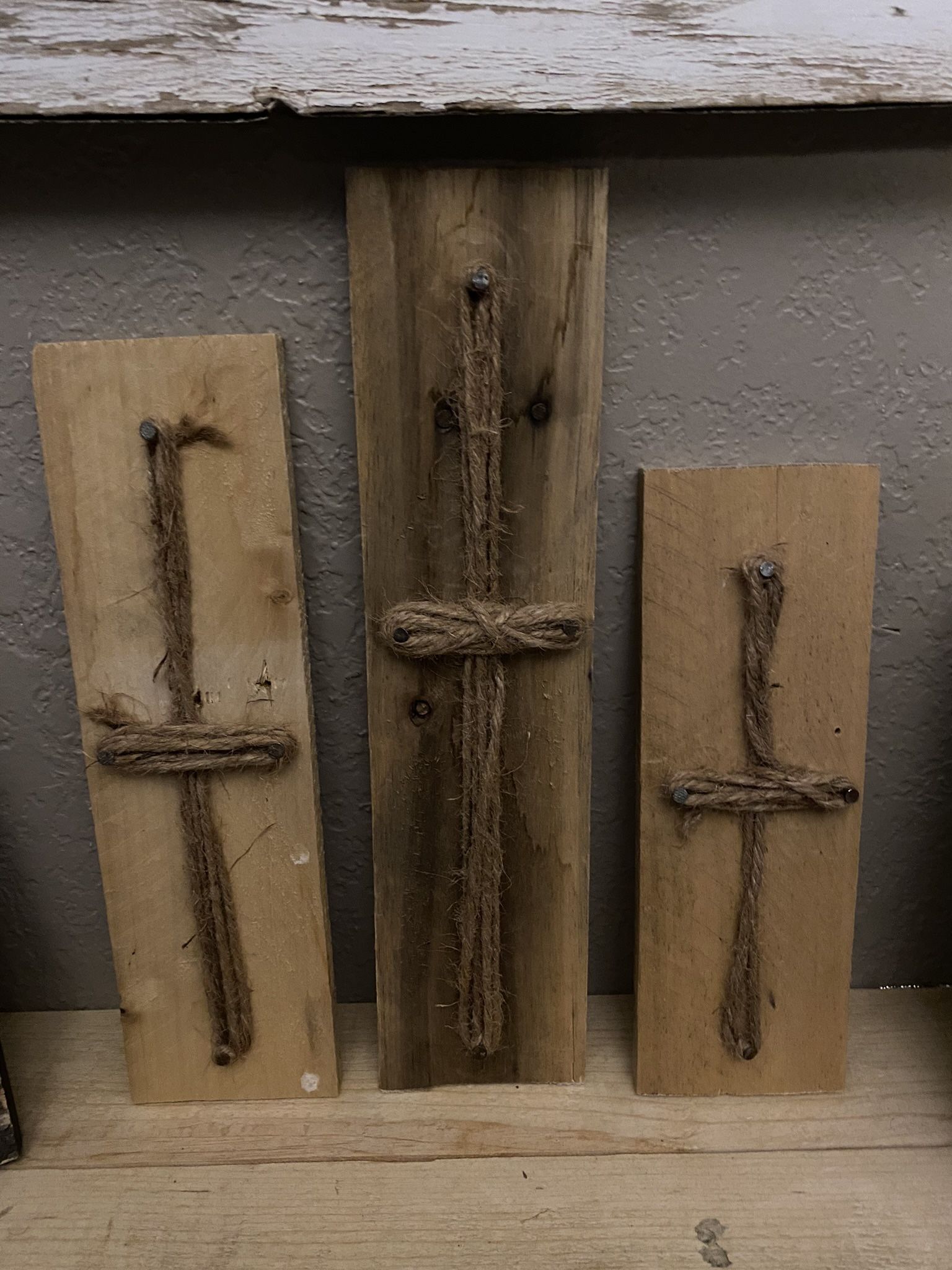 3 nautical rope wooden crosses. Willing to also sell individually.