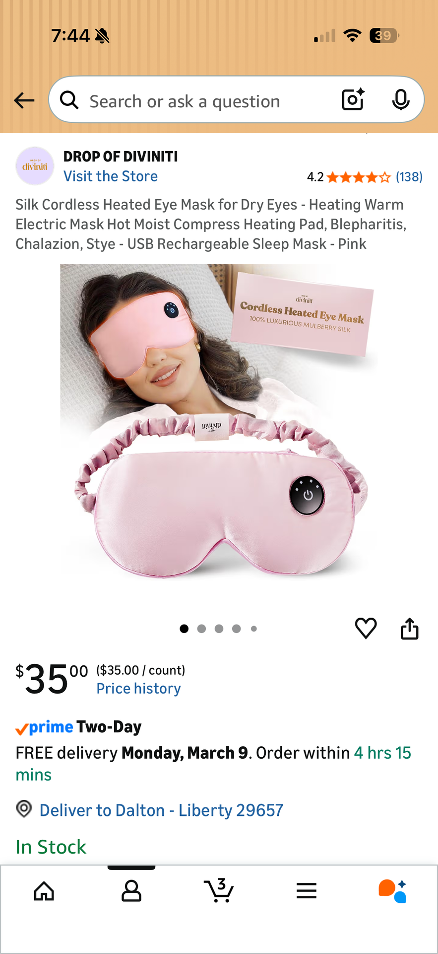 Silk Cordless Heated Eye Mask – USB Rechargeable Warm Compress for Dry Eyes, Blepharitis, Stye, Pink