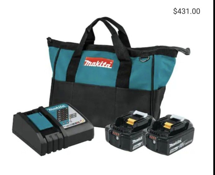 Includes: (1 Rapid Optimum Charger) (2 18V LXTO Lithium-ion Battleies 5.0Ah) and the bag