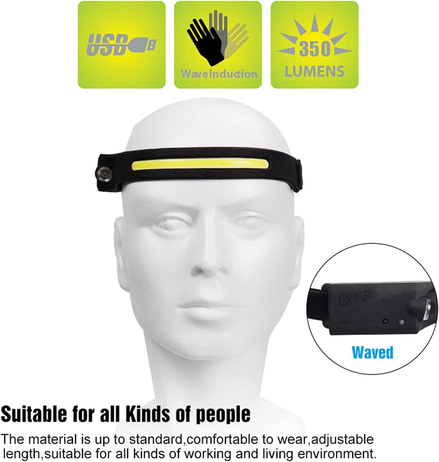 LED Headlamp Rechargeable , 230 ° All Perspectives Induction Headlamp , 8 Modes Headlight , Lightweight Waterproof Headlamp Flashlight for Running , H