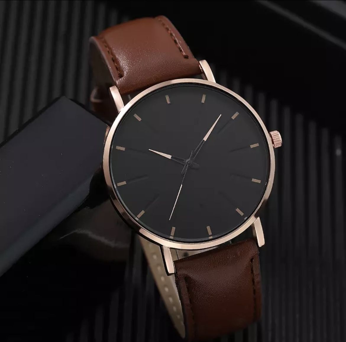 1pc Hot Selling Men's Leather Circular Pointer Watch Business Leisure Quartz Watches