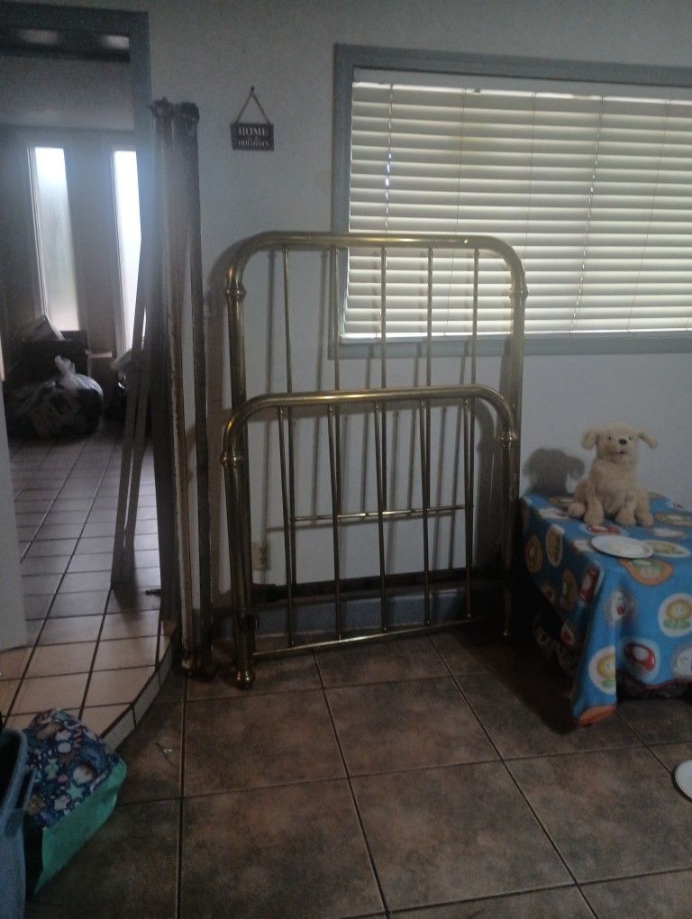 Earlier 1900's X LARGE BRASS TWIN FRAME NO SPRING O LY TWO STANDS , GOOD CONDITION I LOOKED THE SAME ONE THEY GO FOR 2,000 IAM ASKING 200 CHEAP Simmons company