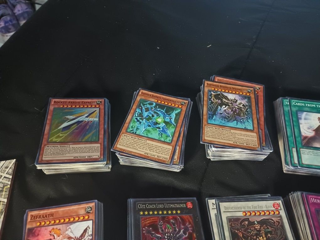 489 cards in total. Variety of stars on beast cards, trap cards, spell cards, 2 pins, starter card placement mat, starter guide on the game. For sale as a whole, no trades. Will meet in Niles at family dollar or dollar general on Robbins or Giant eagle on 46 . $100 or best offer