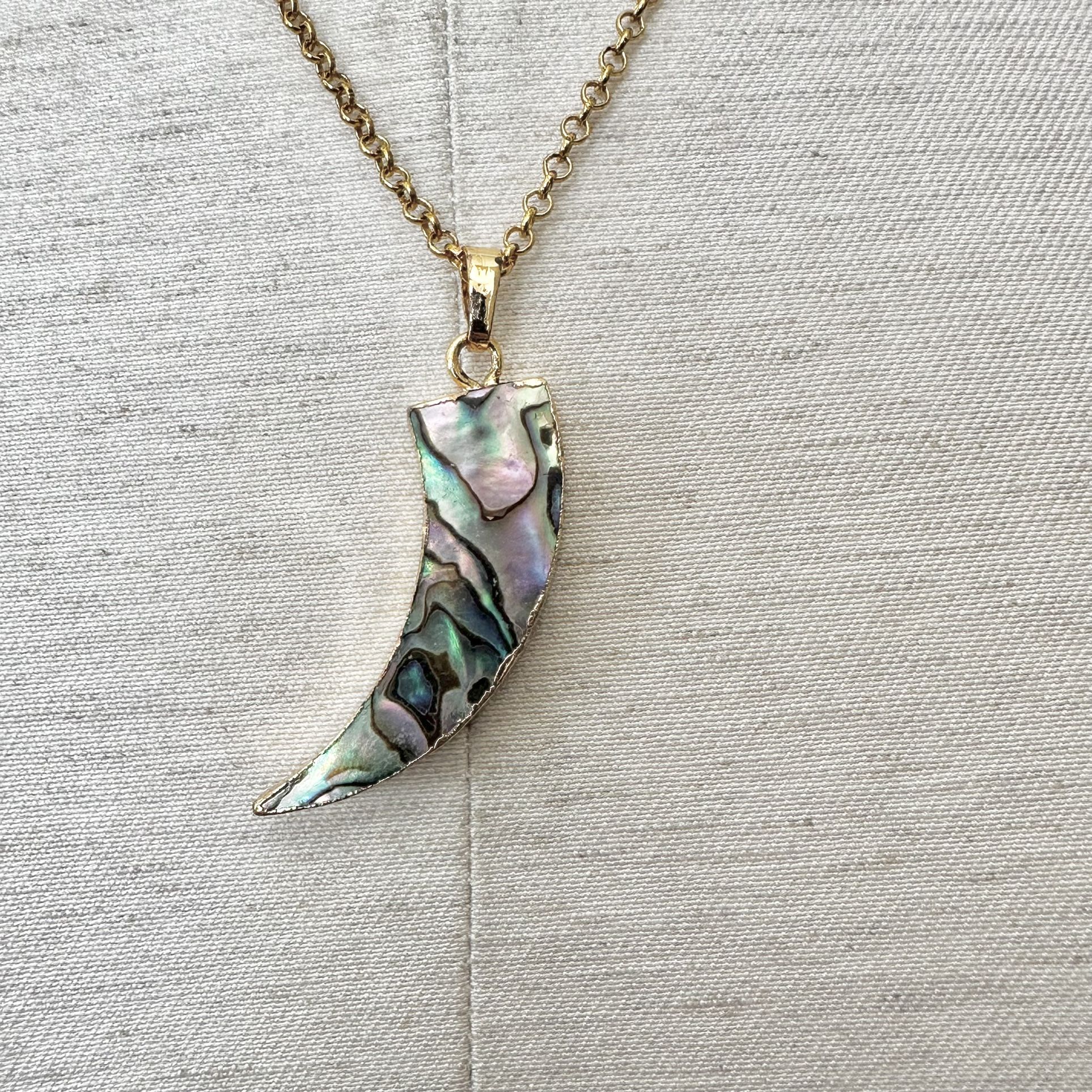 Abalone pendant necklace Gold tone “Tusk” shape Lobster clasp Pretty pendant! Never worn Very open to reasonable offers Fast shipping Bundle to save - the more you bundle, the bigger the discount Please see photos. They are part of the description Happy to answer any questions Thanks for stopping by !