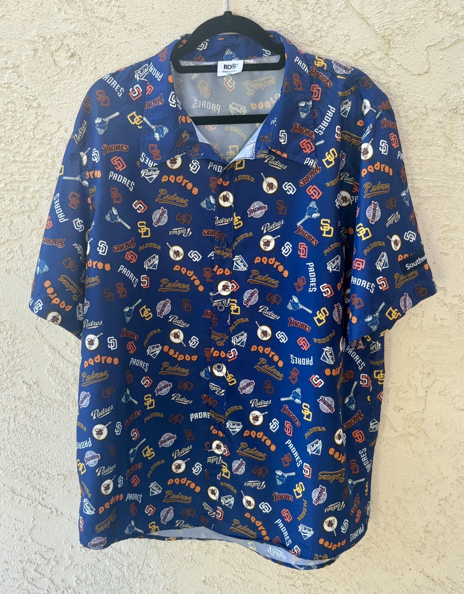 2019 San Diego Padres Vintage Logos Baseball Aloha Hawaiian Camp Shirt Southwest Airlines Size 2XL Adult SIZE: 2XL MEASUREMENTS: ARM PIT TO ARM PIT:23" LENGTH:31" Excellent condition: NO rips, no stains, no tears and no repairs.