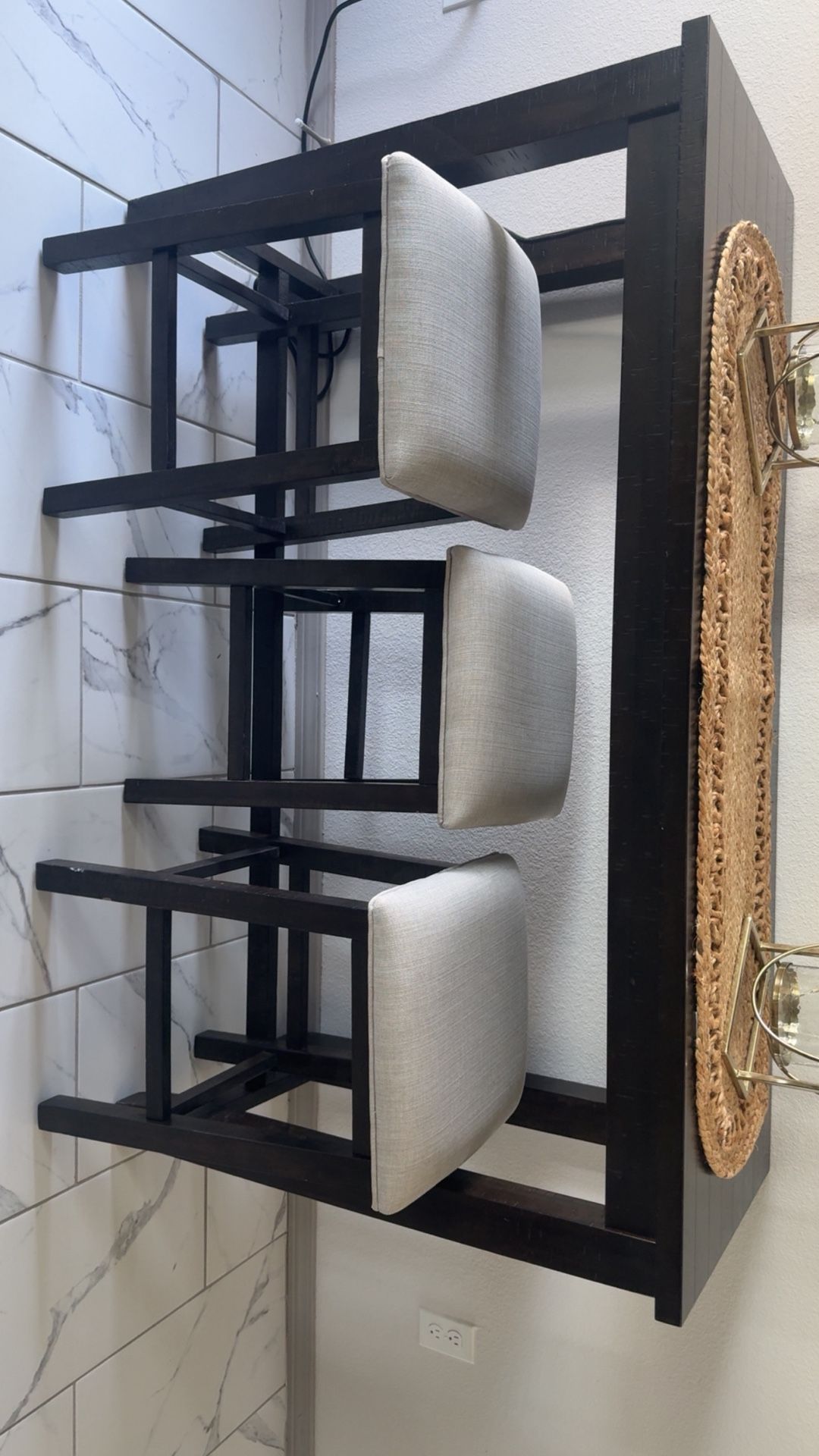 Charging Table And Three Stools - wood, dark chocolate color