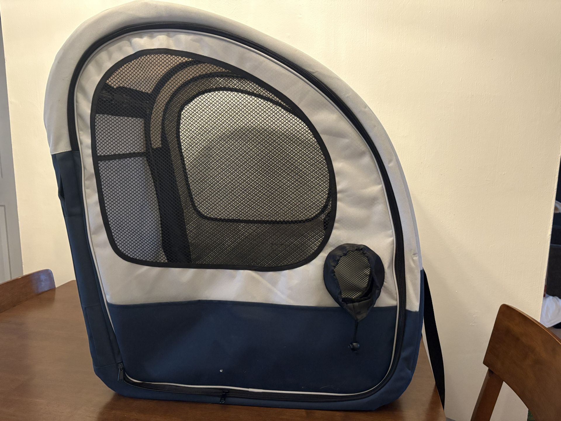 Your car-ride companion. Your travel buddy. Your furry co-pilot. No matter his official road-trip title, your dog loves coming along for the adventure. The Happy Ride® Collapsible Travel Crate will give him a comfy place to ride where he'll be safely contained, not restrained. This dog travel crate is spacious without taking up the entire back seat. It fills up only one seat, so you'll still have room for human passengers. In this roomy crate, your dog will feel like he's lounging in a screened-in porch rather than a travel kennel. The large mesh front and sides let your dog see everyone inside the car and help keep him from getting too hot or cold. It also gives your dog visibility to look out the car window and lets you easily peek into the back seat to check on him. Inside the dog travel crate is a pad with a fleece cover to help your pet feel extra cozy in the car. The removable fleece cover is waterproof and machine washable, so you can easily wash away dirty pawprints or other messes. The outer shell of the collapsible crate can also be removed and tossed in the washing machine after extra messy adventures. You won't have to worry about the travel crate moving when your pet does. Loop the headrest strap over the front seat's headrest and pass the seatbelt through slits on the back of the crate to keep it in place. A layer of fabric hides the seatbelt from your pet, so they won't be tempted to use the seatbelt as a chew toy on a long drive. This car crate has 2 doors that fully unzip to help you easily get your pet in and out of the car, whether the crate is behind the driver's seat or the passenger's seat. The crate also has 2 storage pockets with a hook and loop closure to keep your dog’s leash, poop bags and treats packed and tidy while on the road. There are 2 drawstring openings, one on each side of the travel crate, so you can reach in to give your dog an extra pet (or treat) without unzipping the door. When you arrive at your vacation rental, or if you need to make some more space in your car, this portable dog crate easily folds down for convenient storage until you and your dog hit the road again. Your pet deserves to road trip in comfort, safety and style. Trust PetSafe® to keep your pet healthy, safe and happy. Features Keep your dog from freely roaming around the car while you’re driving Travel crate folds down for easy storage when not in use Roomy travel crate gives your pet plenty of space to get comfy during car rides Mesh front and sides give your pet extra ventilation and visibility 2 drawstring openings allow you to pet your dog or give him a treat without having to open the crate doors Headrest strap and vehicle seatbelt keep the crate from moving Seatbelt is hidden between fabric panels so your pet won’t be tempted to chew on it 2 doors on the crate allow your pet to enter from the driver or passenger sides 2 convenient storage pockets to hold treats, leashes and poop bags Leather handle lets you easily carry the travel crate when expanded Includes a cushioned pad inside a removable, waterproof fleece cover Machine washable outer shell and fleece cover, air dry Measures 27 in L x 19 in W x 28 in H when fully expanded to fit most vehicles, may not fit compact vehicles For pets up to 60 lb https://offerup.co/faYXKzQFnY?$deeplink_path=/redirect/