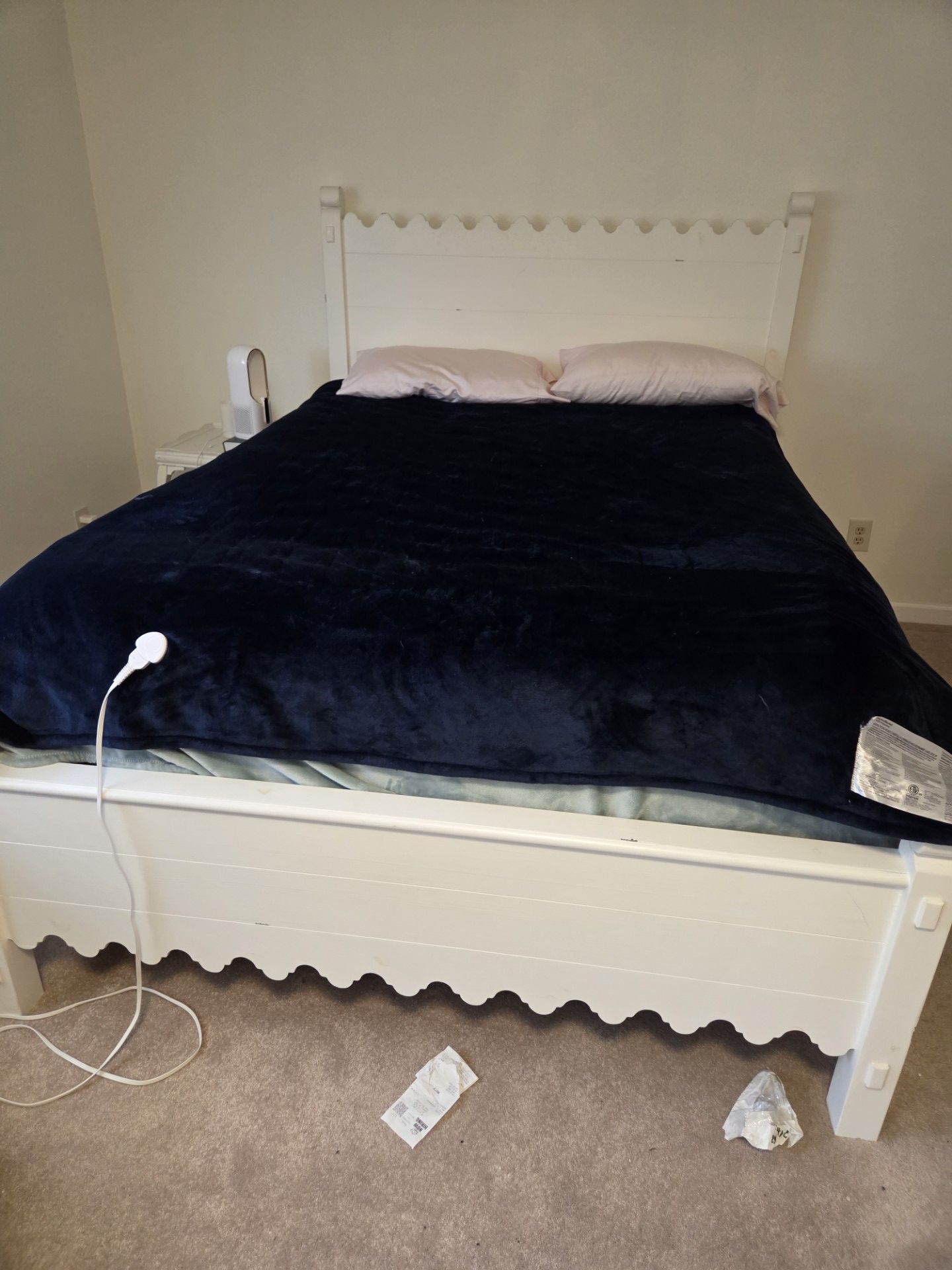 White queen bed with headboard and footboard. Great condition. Mattress not included.