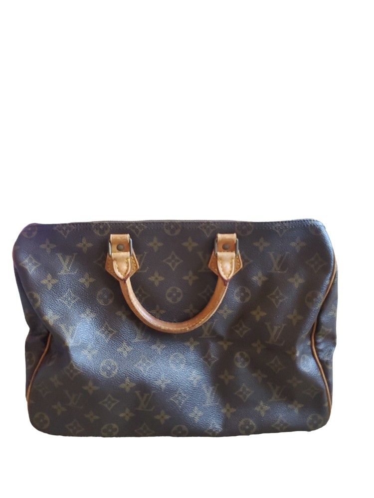 Pre-owned. Leather handles and pipings has signs of use. Zipper leather is missing. The body is in great shape, no rips or tear. Interior pocket has writing on the back but I erased.