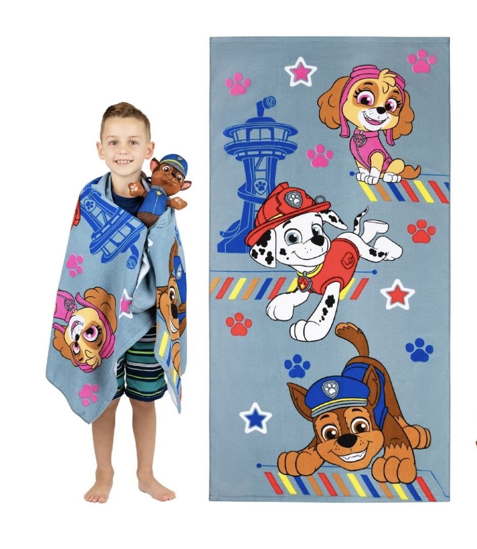 PAW Patrol Kids Chase Towel and Character Scrubby Set, Gray Brand new