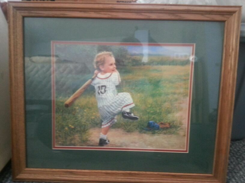 Very cute print of toddler batting. . 22 1/2"W x 18 1/2"H