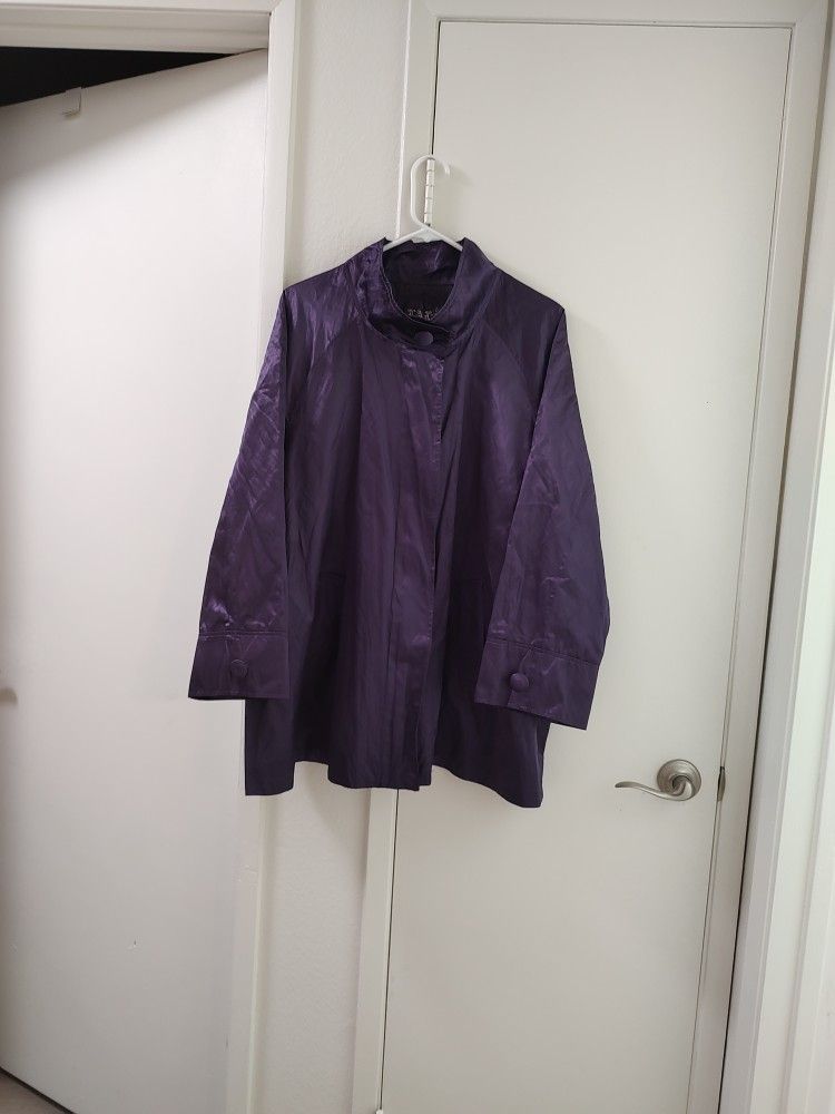 Zip up & snap closure 2 functional pockets there is a small spot by the entrance of the right hand pockets that is a little darker. It is hardly noticeable.