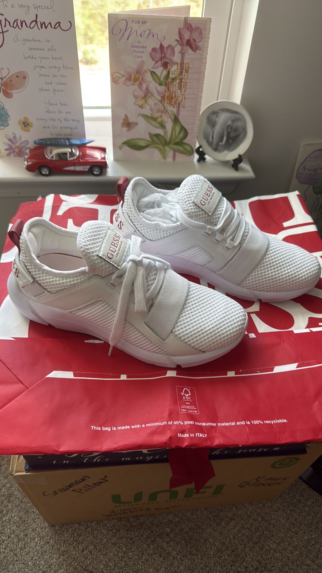 Brand new shoes, never been worn. Selling because they’re too big and wide for me. Lost receipt to return to store. Beautiful shoes, wish they were my size. My daughter bought them for me. I have a wide foot but this is a man size 8 and a half, unless a woman has bigger feet.😄