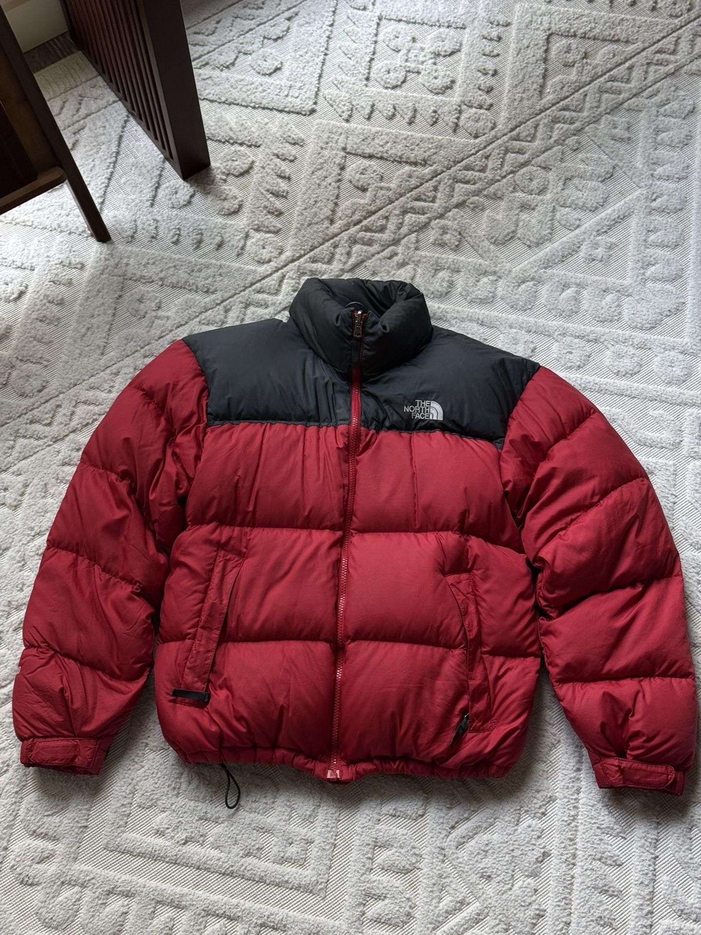 1996 Retro Nuptse Jacket FP700, The North Face Spec: - Size Tag S/P Fit to M, Length x Chest Wide = 65x56cm - Rare Color, Charcoal/Red - Hidden Hood - Packable Perfect condition