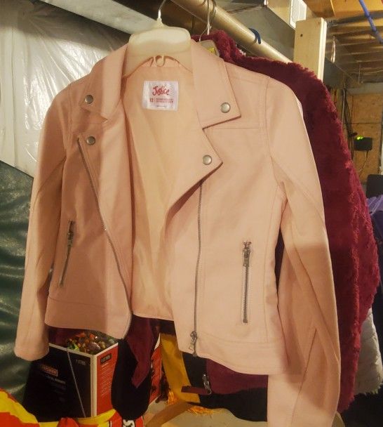 Light pink girls's Justice Faux Leather jacket. Size 12. Excellent condition.
