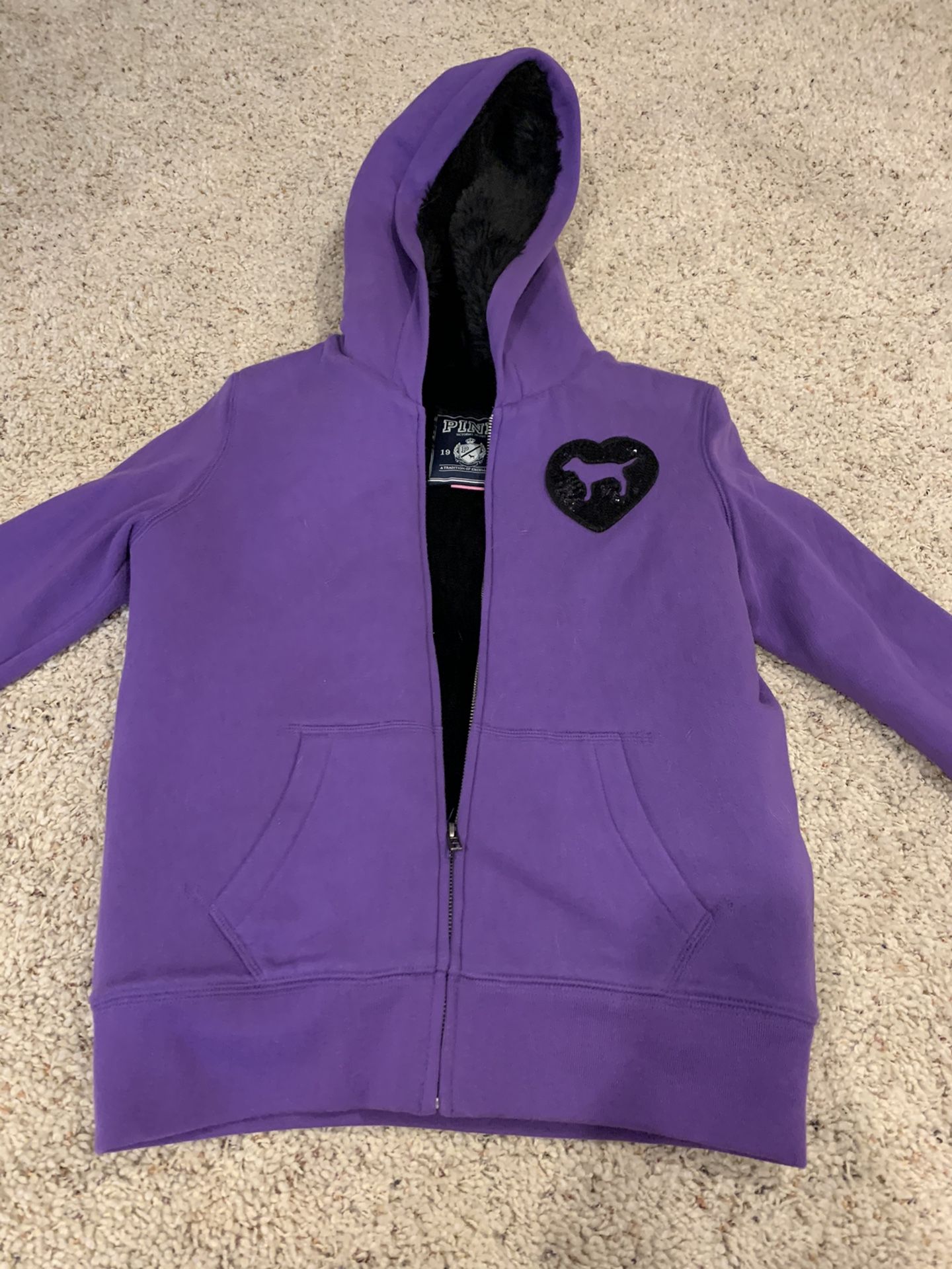 Pink hoodie sweatshirt with bling but like a jacket Fur inside and never worn tags are off Size small and smoke free home