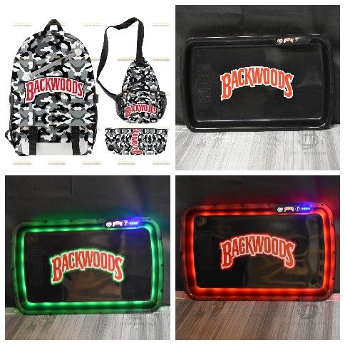 BRAND NEW 6 PC BACKWOOD SET TRAY HAS 7 DIFFERENT LED SETTINGS COLORS CHANGE TO YOUR OPTION ⭐BAGS ARE LIGHTWEIGHT, SPACIOUS & FULL OF STYLE ⭐ LISTING INCLUDES ❗ 1. "LARGE SIZE" BACKPACK - SIZE APPROXIMATELY 18" TALL X 10 " WIDE 2. "MEDIUM SIZE BAG - SIZE APPROXIMATELY 13" TALL X 8" WIDE 3. SMALL POUCH BAG SIZE APPROXIMATELY - 3 1/2" TALL x 7" WIDE 4. LED GLOW TRAY 5. SUEDE COVER 6. USB CHARGER CABLE glowtray - music - retro - supreme - Cookies - Runts - Backwoods - Bob Marley - Rick and Morty - Huf - Raw - WWE Squidgames - Hippie - Mylar - Family guy - The simpsons - travis scott - off white - skater - Rick & Morty - yeezyboost - supreme - samsung - apple -billieelish - fashionnova - snoopdogg - lulu melon - Kylie Cosmetics - funko pop - fortnite - computer - xbox - ps5 - memory card - camera - card - charger -
