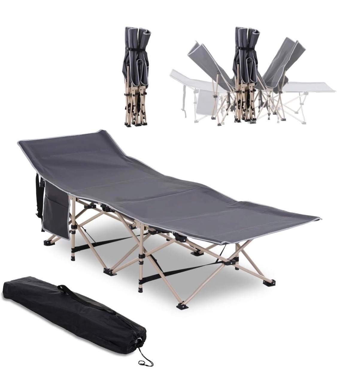Folding Camping Cot for Adults - Portable Sleeping Bed with Carry Bag and Side Pocket, 330 lbs Capacity, Ideal for Travel and Camping