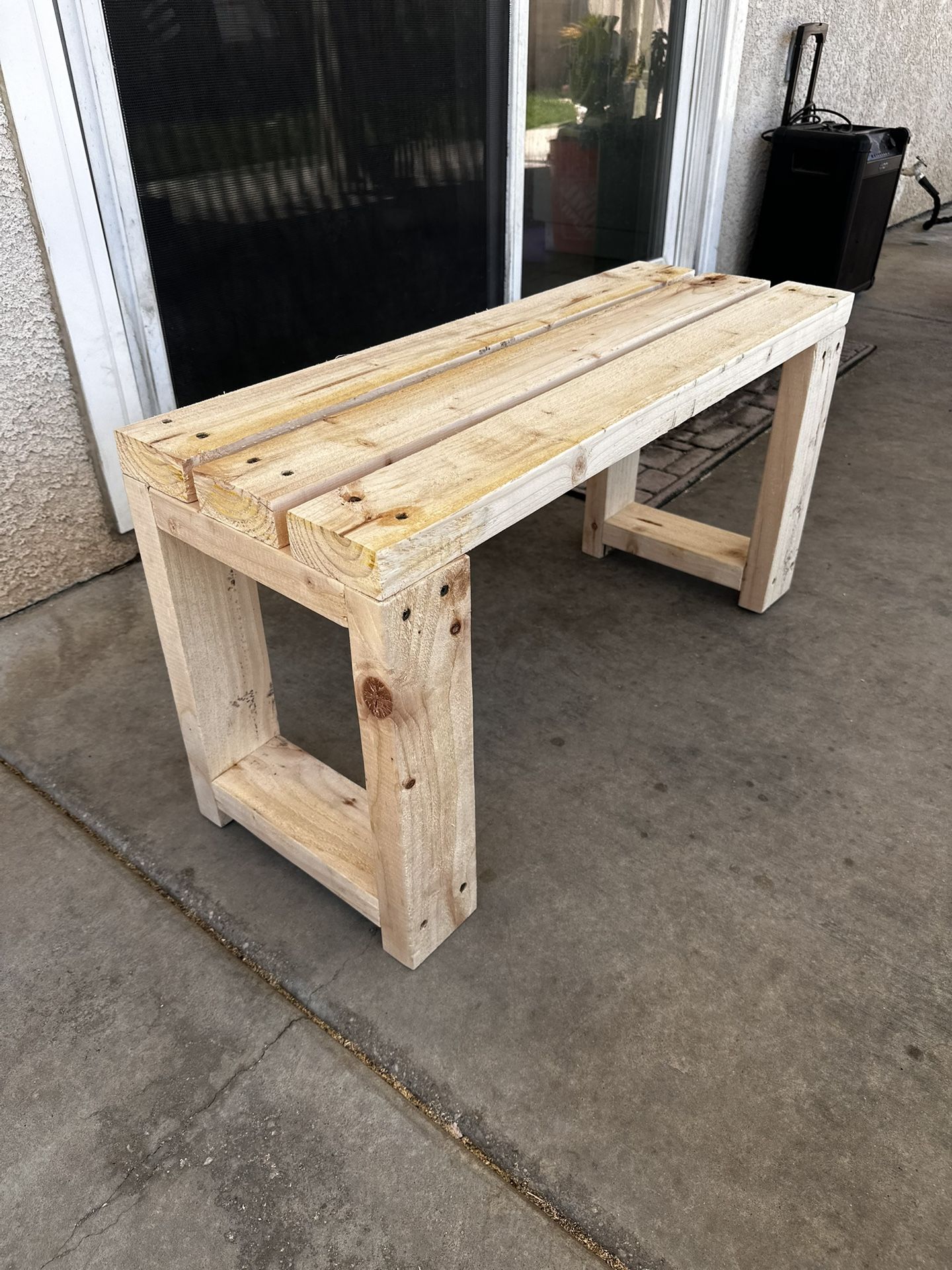 Small wooden bench made to order. Dimensions are roughly 32” x 12” x 16.5” will already come sanded & stained. Message me for any more info. Thanks for looking!