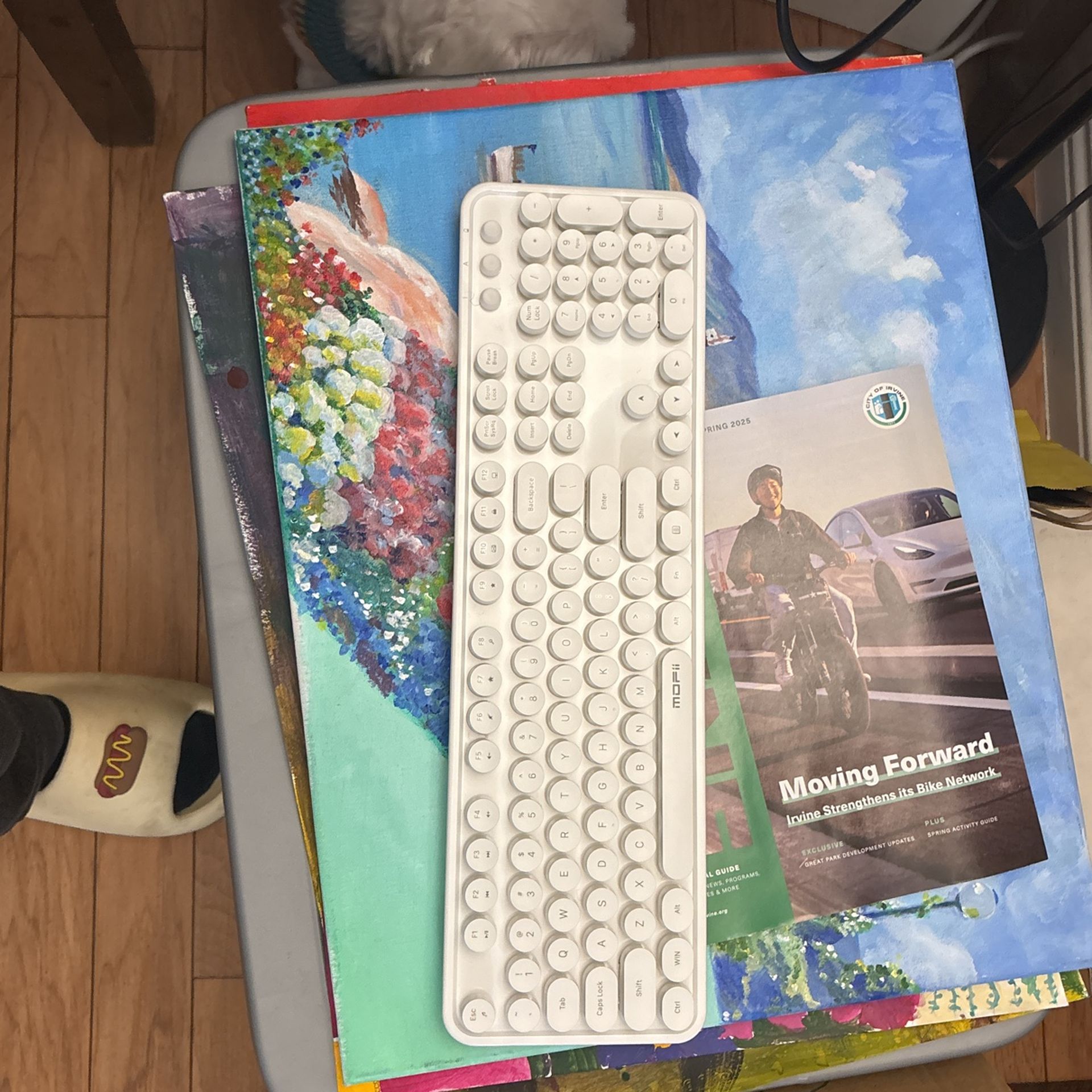 MOFII Wireless Keyboard and Mouse Combo, Computer Full Size 2.4G Plug and Play Wireless Typewriter Retro Round Keyboard and Mouse Set for Windows, Computer, Desktop, PC, Notebook - (Off White)