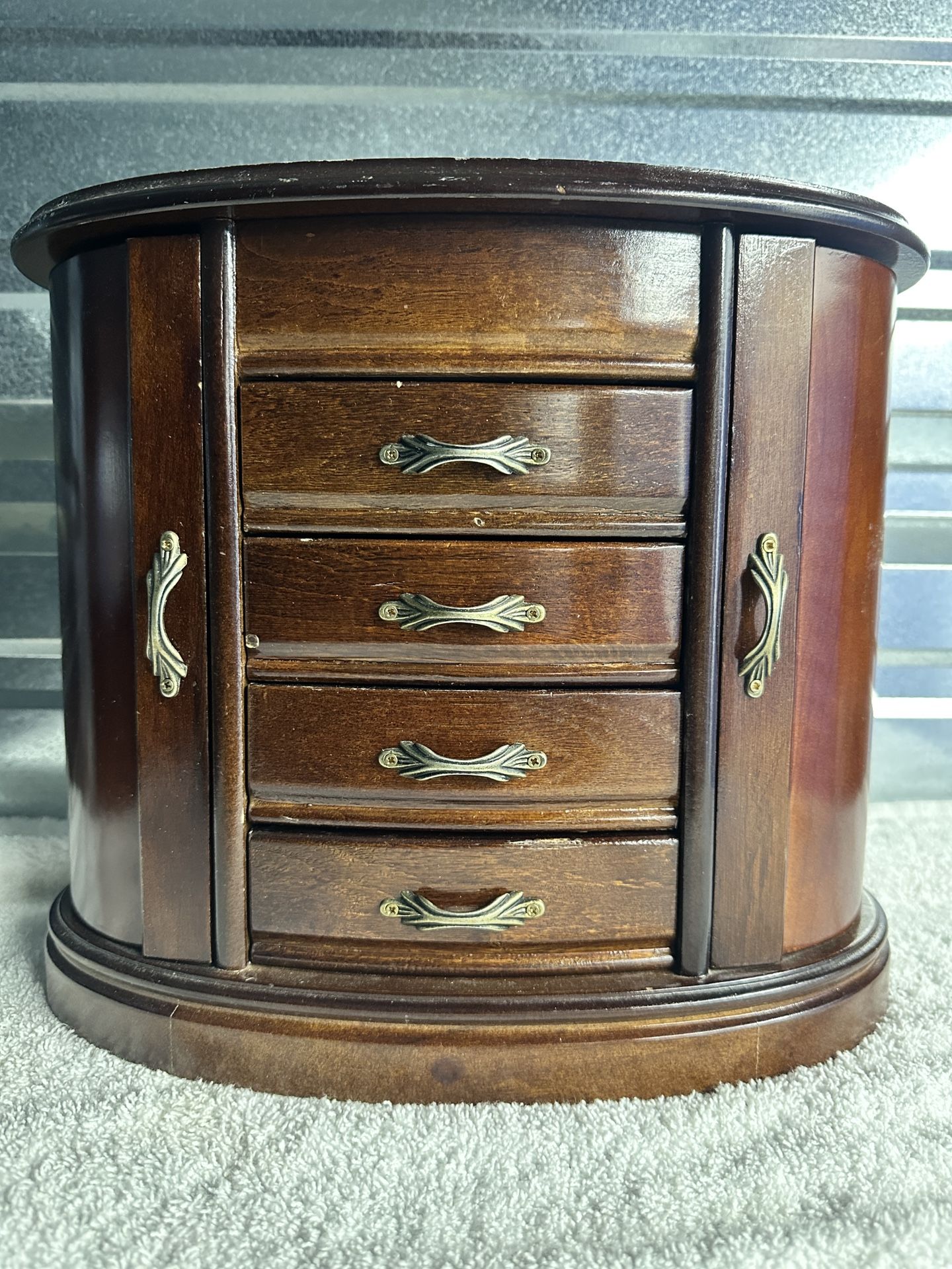 Heloise Walnut Finish Wooden Jewelry Box 11” Tall 13” wide