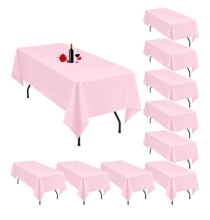 10 Pack Pink Tablecloths for 8 Foot Rectangle Tables 60 x 126 Inch Pink Table Cloth Rectangle Tables 8ft Tablecloth Linen Polyester Fabric Washable Ta