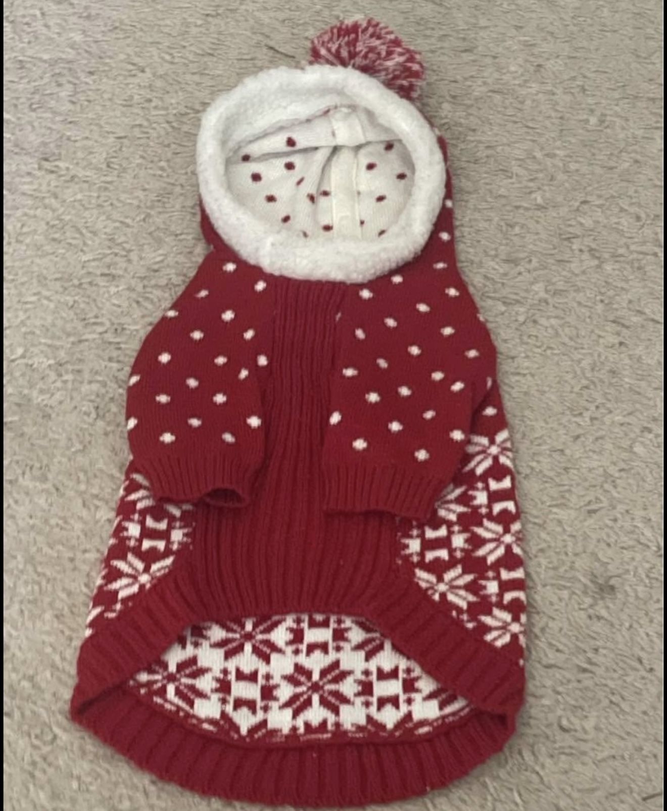Let it snow dog pullover/hoodie/sweater. Snowflake pattern. See sizing chart, size 10”.